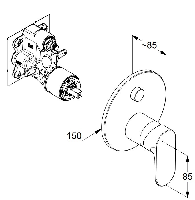 Louva, лицевая часть встраиваемого смесителя, 2 функции, чёрный цвет, матовый, переключатель push&switch, арт. 247593975, Kludi