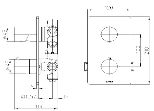 -Встраиваемая часть универсального термостатического смесителя Nobu на 1-5 выходов с переключением на 1-5 выходов на 1/2” F и комплект для конфигурации на 1/2/3/4/5 выходов, арт. Z00125000 заказывается отдельно