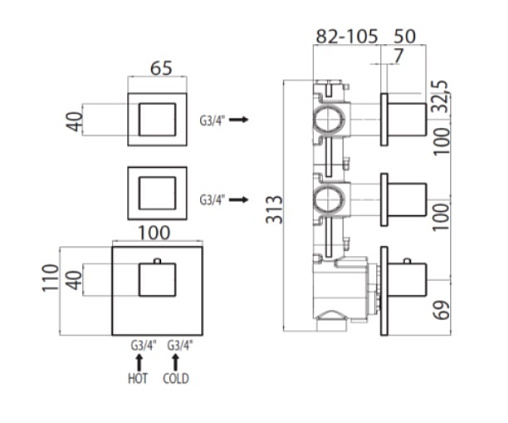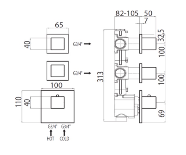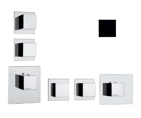 Outlets, лицевая часть встраиваемого смесителя, 4 функции, чёрный цвет, матовый, термостат, кубический дизайн, арт. Z032203.073, Bossini