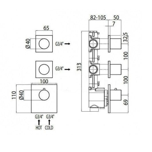 Outlets, лицевая часть встраиваемого смесителя, 4 функции, никель, шлифованный, термостат, арт. Z031203.094, Bossini