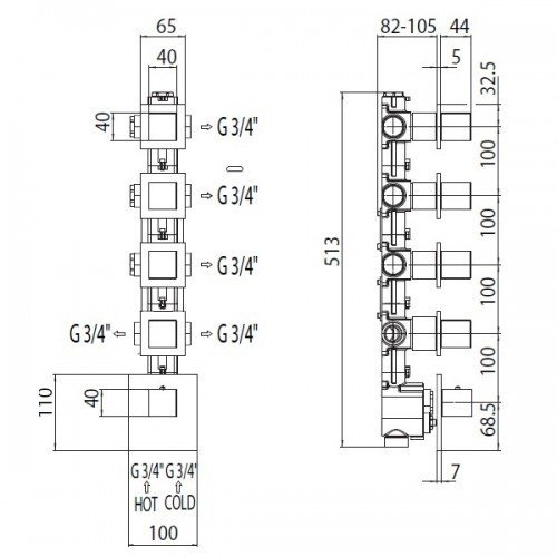 Outlets, лицевая часть встраиваемого смесителя, 5 функций, термостат, арт. Z031208.030, Bossini
