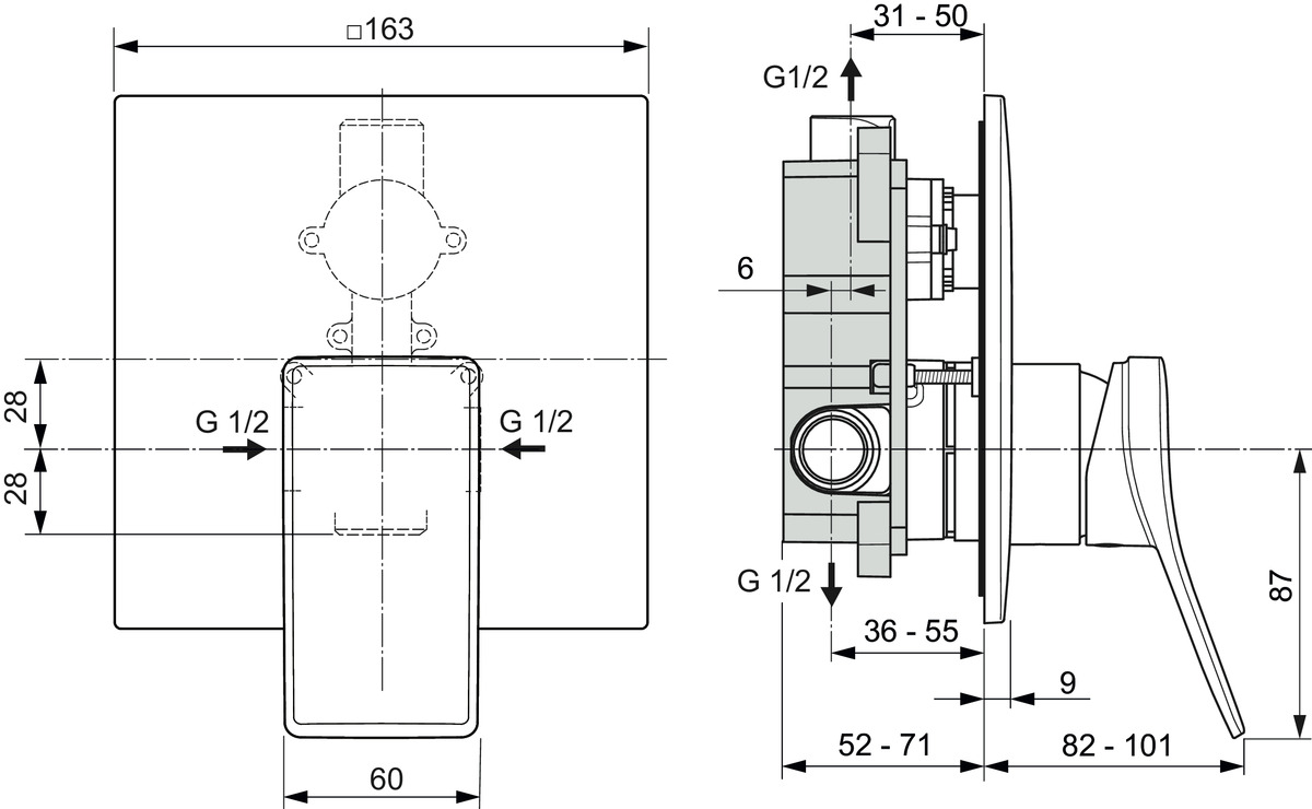 Conca, встраиваемый в стену смеситель без излива, 1 функция, стальной цвет, арт. A7376GN, Ideal Standard