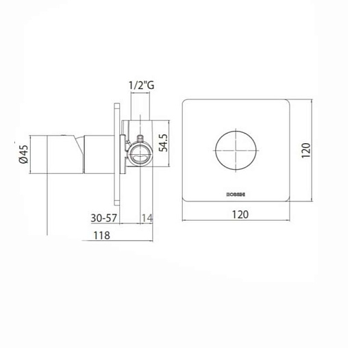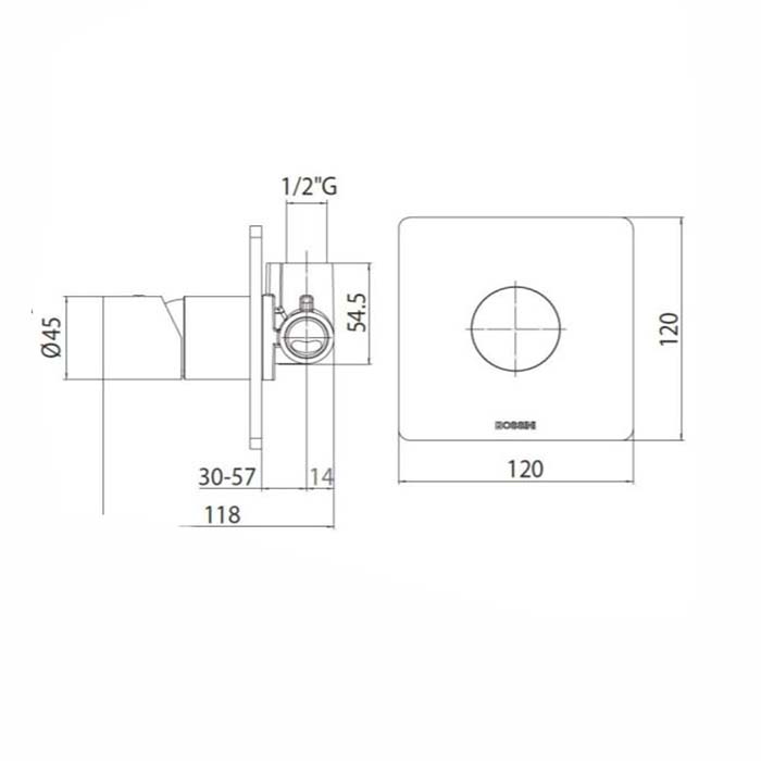 Встраиваемый в стену смеситель без излива Cube 1 функция, Bossini