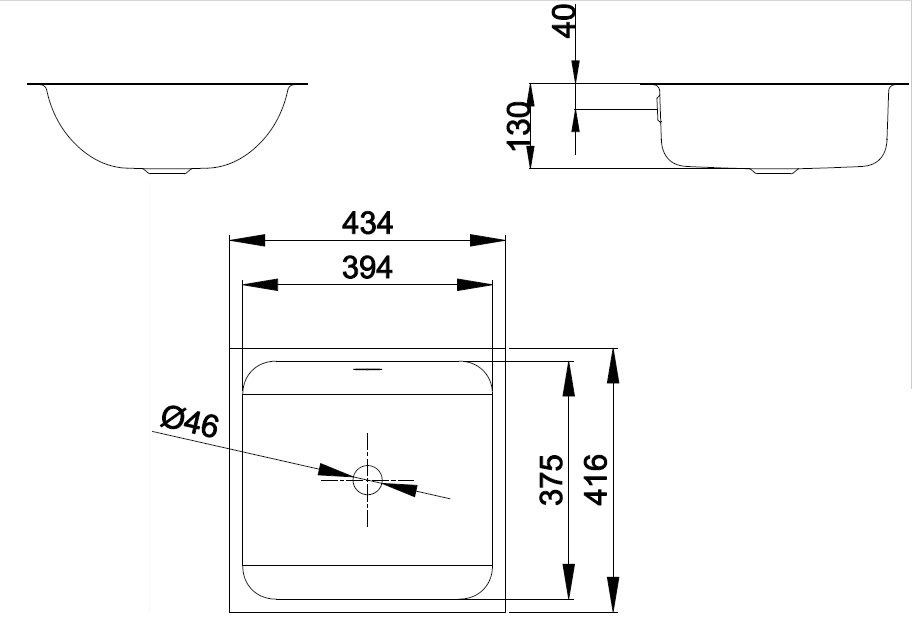 BetteOne 43,4х41,6см, встраиваемая снизу раковина, сталь, арт. A135-000, Bette