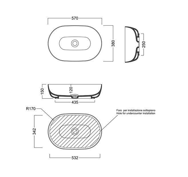 Happy hour 57х38см, встраиваемая снизу раковина, санфарфор, арт. Y8AQ01, Hatria