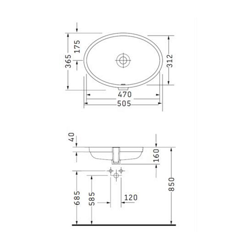 Встраиваемая снизу раковина Jelsa 50,5х36,5 см, санфарфор, Duravit