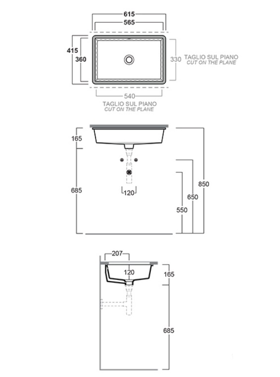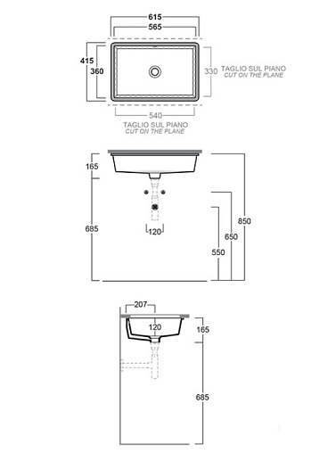 Встраиваемая снизу раковина Lavabi d'arredo 61,5х41,5 см, санфарфор, черный матовый, Simas