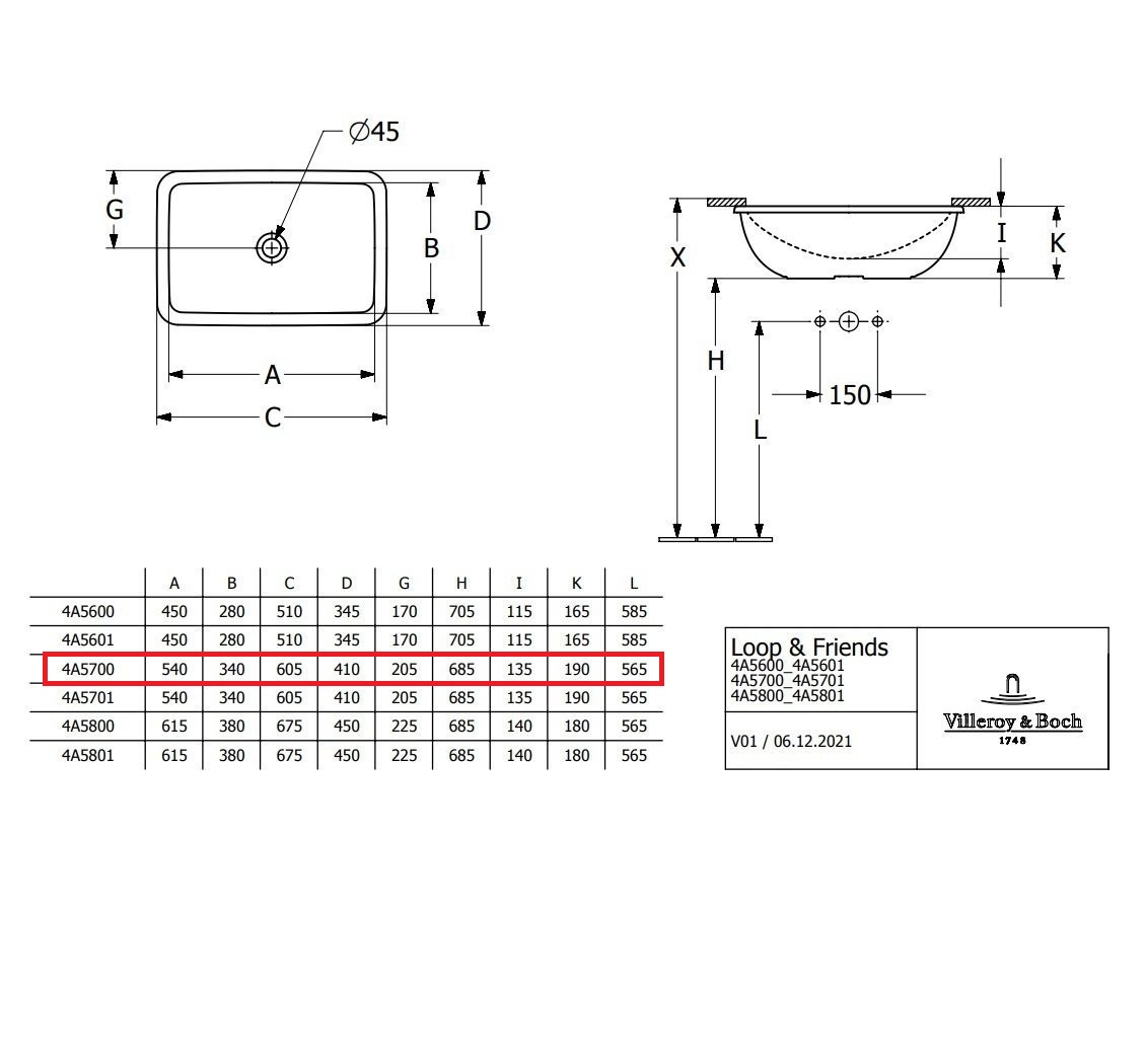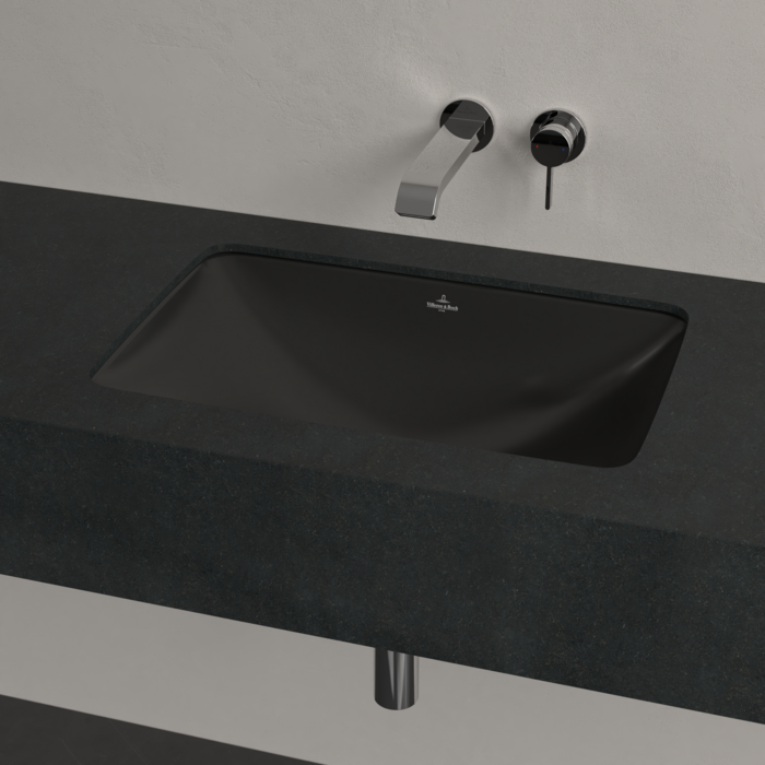 Встраиваемая снизу раковина Loop&Friends 54х34 см, антигрязевое покрытие, наружная сторона покрыта глазурью, санфарфор, черный глянцевый, Villeroy&Boch
