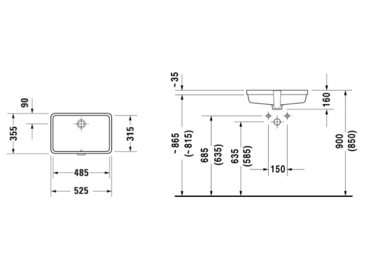 Vero 52,5х35,5см, встраиваемая снизу раковина, санфарфор, арт. 03304800001, Duravit