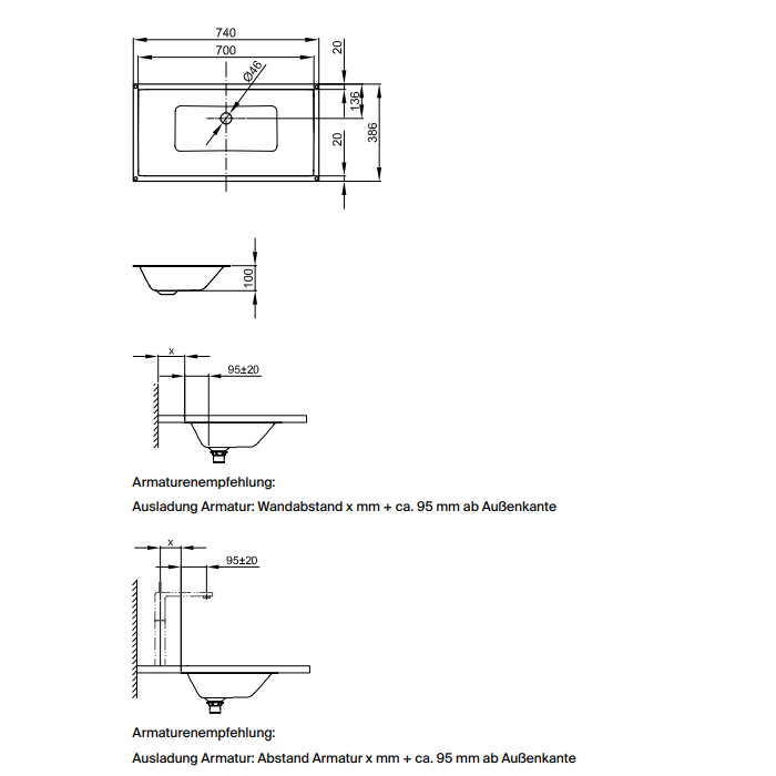 BetteLoft 74х38,6см, встраиваемая сверху раковина, сталь, арт. A231-000, Bette