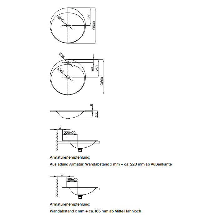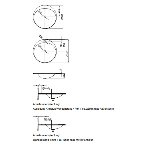 BetteLux 50х50см, встраиваемая сверху раковина, сталь, с отв. под смеситель, арт. A220-000HLW1, Bette