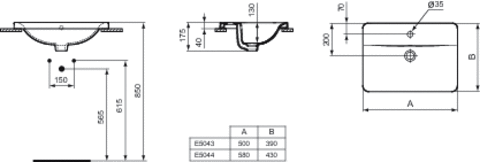 Встраиваемая сверху раковина Connect 58х43 см, санфарфор, Ideal Standard
