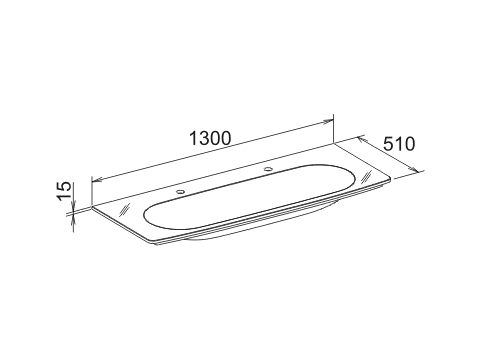 Встраиваемая сверху раковина Elegance 130х51 см, для двух смесителей, стекло, с отв. под смеситель, Keuco