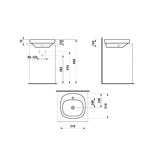 Palomba collection 51х51см, встраиваемая сверху раковина, санфарфор, с отв. под смеситель, арт. 8.1280.2.000.111.1, Laufen