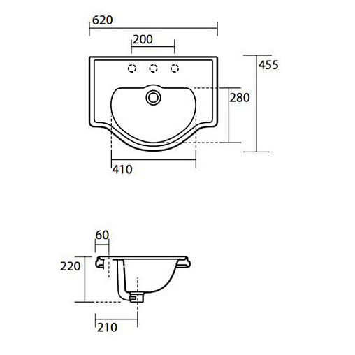Встраиваемая сверху раковина Retro 62х45,5 см, санфарфор, Kerasan