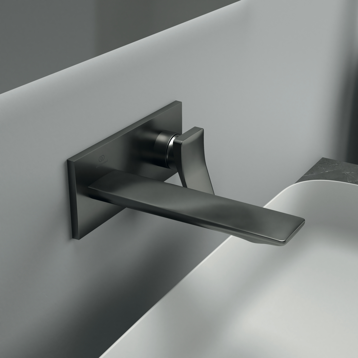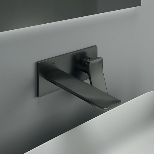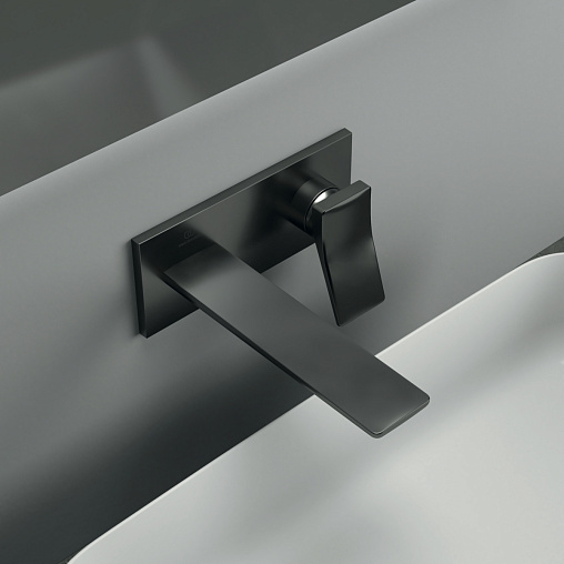 Внешняя часть встраиваемого смесителя для раковины Conca матовый, длина излива 18см, чёрный цвет, Ideal Standard