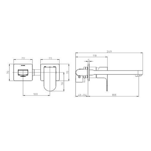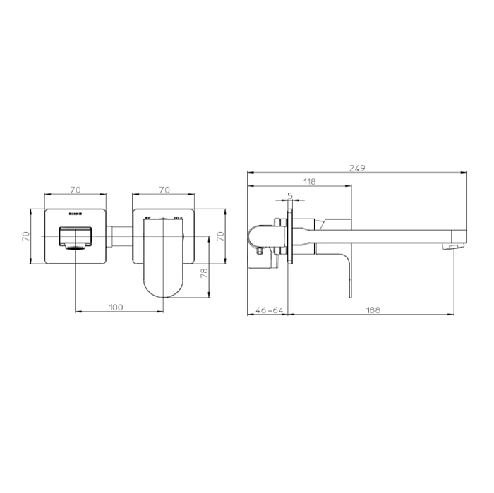 Внешняя часть встраиваемого смесителя для раковины Gillo длина излива 18,8см, Bossini