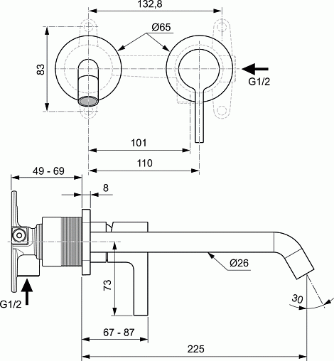 Внешняя часть встраиваемого смесителя для раковины Joy длина излива 22,5см, Ideal Standard