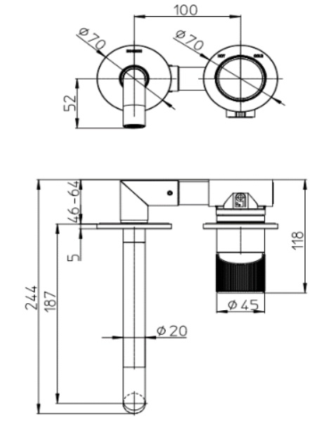 Внешняя часть встраиваемого смесителя для раковины PLY длина излива 18,7см, Bossini