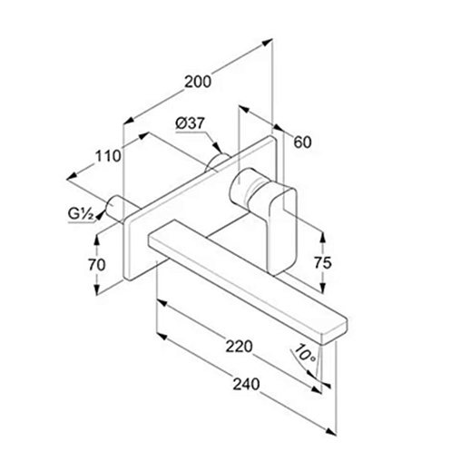Внешняя часть встраиваемого смесителя для раковины Renon длина излива 24см, Kludi