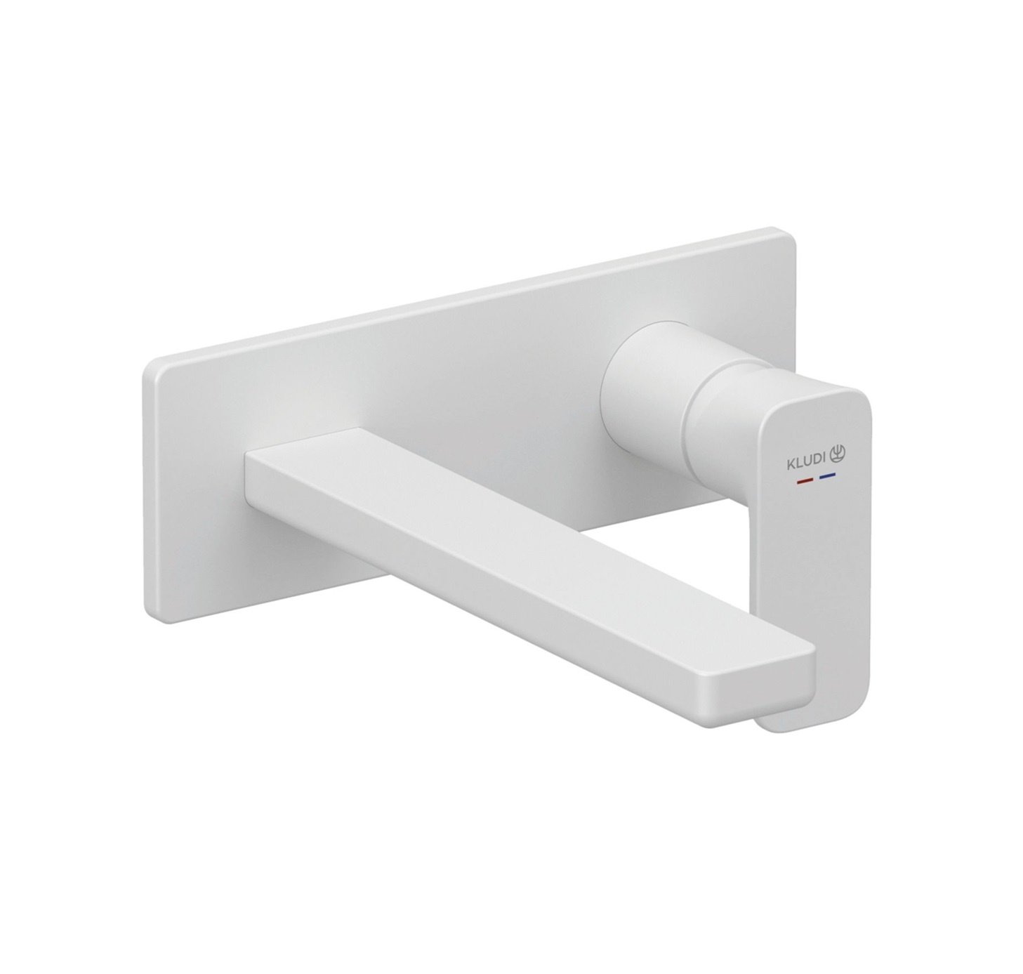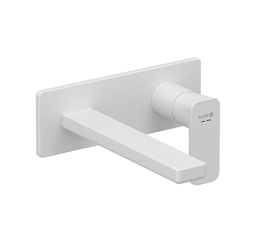 Внешняя часть встраиваемого смесителя для раковины Renon матовый, длина излива 21см, белый цвет, Kludi