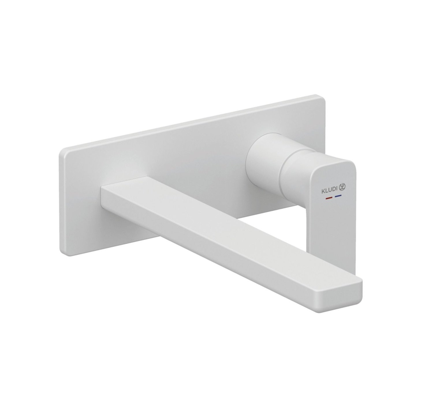 Внешняя часть встраиваемого смесителя для раковины Renon матовый, длина излива 24см, белый цвет, Kludi