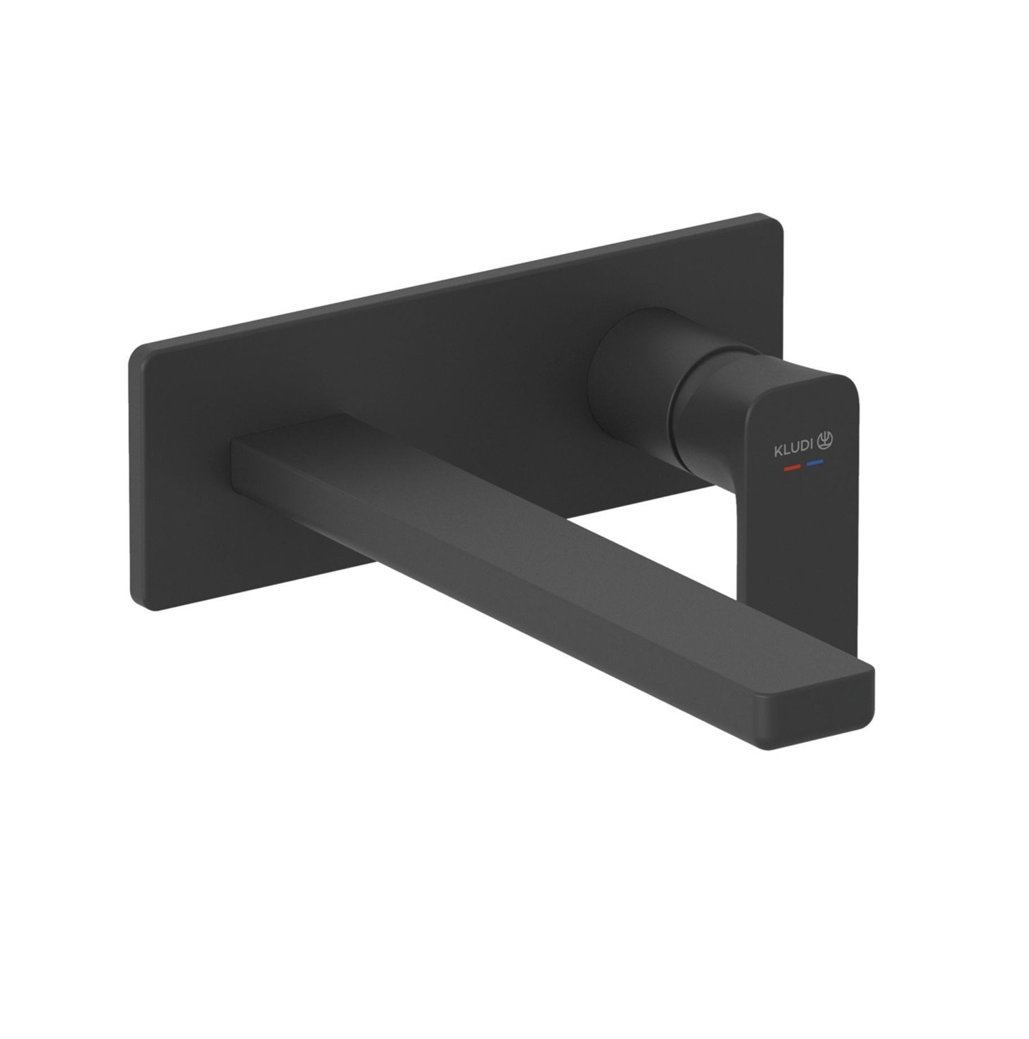 Внешняя часть встраиваемого смесителя для раковины Renon матовый, длина излива 24см, чёрный цвет, Kludi