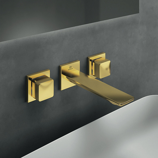 Встраиваемый в стену смеситель для раковины Conca длина излива 18см, золото шлифованное, Ideal Standard
