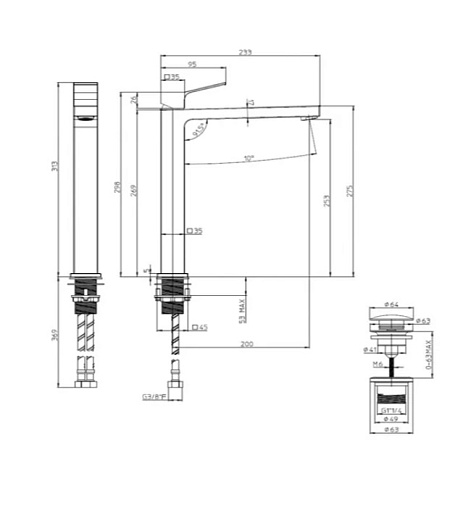 -Высота излива: 253 мм