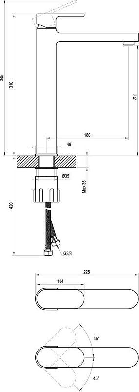соединительные шланги: гибкий 400 мм, диаметр G3/8