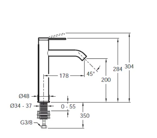Grands Boulevards 28,4см, высокий смеситель на столешницу, неповоротный излив, золото, без донного клапана, матовый, арт. E77959-4AND-2MB, Jacob Delaf