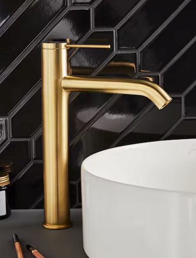 Высокий смеситель на столешницу Grands Boulevards 28,4 см, матовый, неповоротный излив, золото, без донного клапана, Jacob Delafon