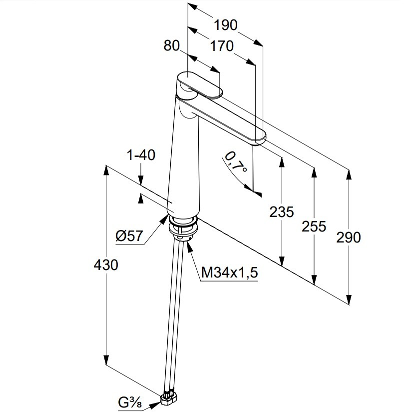 Диаметр подводки G 3/8