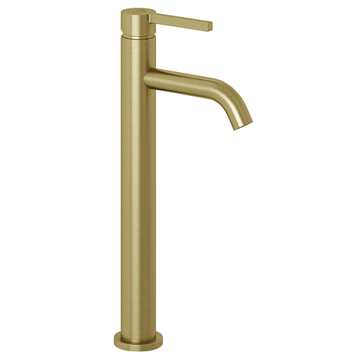 Nova Fonte 24см, высокий смеситель на столешницу, неповоротный излив, золото, без донного клапана, брашированное, арт. 20298N015, Kludi