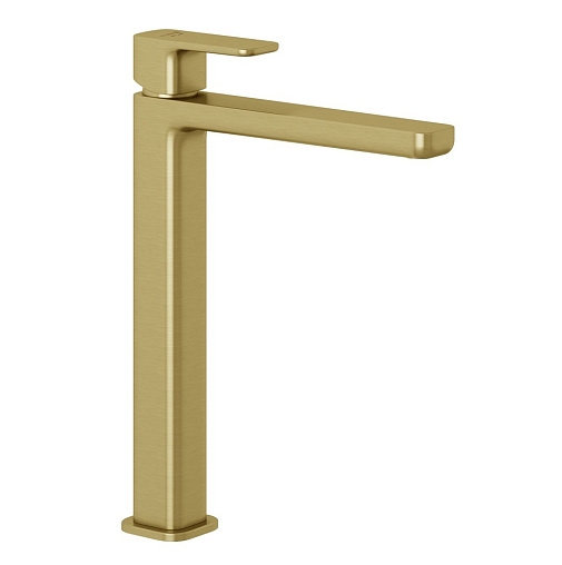 Renon 24см, высокий смеситель на столешницу, неповоротный излив, золото, без донного клапана, брашированное, арт. 42298N075, Kludi