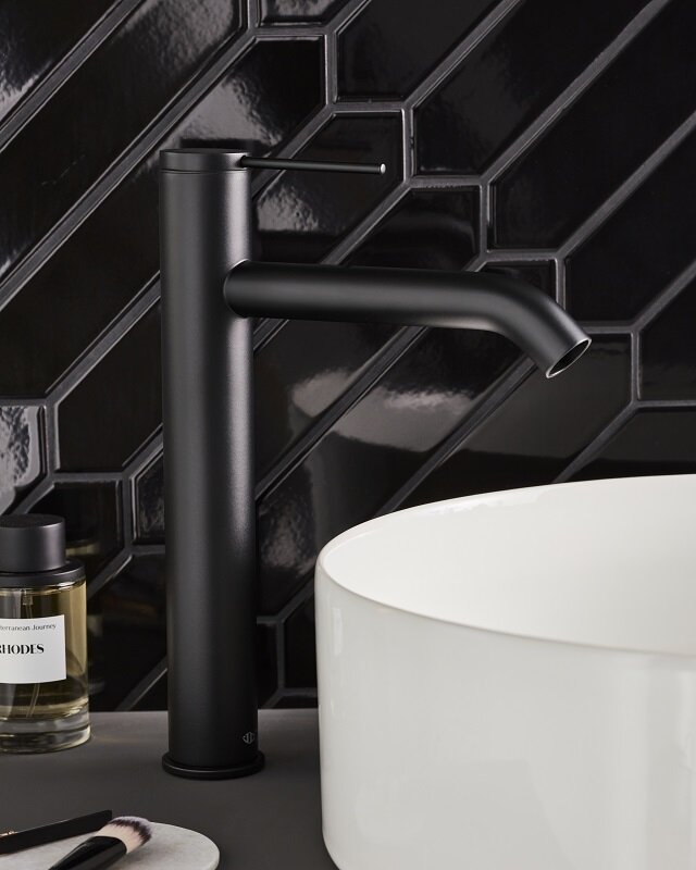 Vivienne Signature 20см, высокий смеситель на столешницу, неповоротный излив, чёрный цвет, без донного клапана, матовый, арт. E77959-4AND-BL, Jacob Delafon