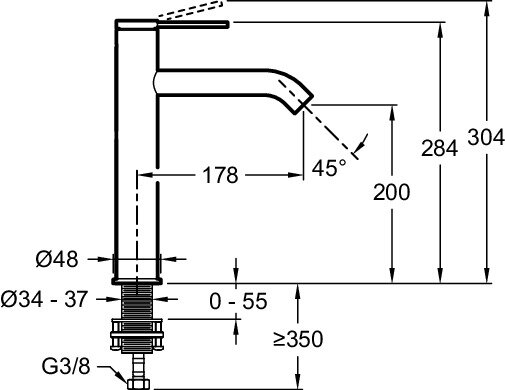 Высокий смеситель на столешницу Vivienne Signature 20 см, матовый, неповоротный излив, чёрный цвет, без донного клапана, Jacob Delafon