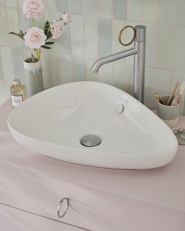 Vivienne Signature 23,4см, высокий смеситель на столешницу, неповоротный излив, без донного клапана, матовый, ручка латунь, арт. E38683-LB3-G, Jacob Delafon