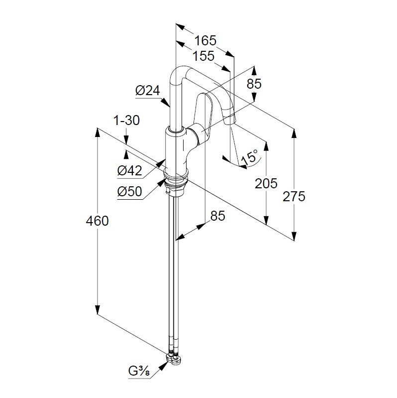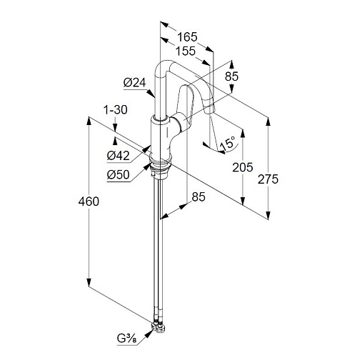 X1 20,5см, высокий смеситель на столешницу, поворотный излив, без донного клапана, управление сбоку, арт. 320280575, Kludi