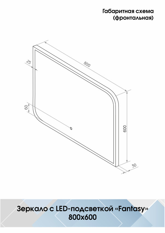 Зеркало с подсветкой "Fantasy Led" 800х600 - это настенное зеркало нового поколения, изготовленное из полотна толщиной 4 мм от ведущего европейского производителя AGC. При изготовлении используется светодиодная лента с плотностью диодов 120 шт/м и мощностью 9,6 Вт/м, обеспечивающая яркое и равномерное свечение. "Fantasy Led" 800х600 - это прямоугольное зеркало для ванной шириной 80 см, высотой 60 см. Вес зеркала с упаковкой - 7,2 кг. Для управления подсветкой используется cенсор. Температура внутренней подсветки холодная - 6000К, потребляемая мощность 25 Вт. Основа для изделия - корпус из ударопрочного пластика белого цвета. Срок гарантии - 2 года.