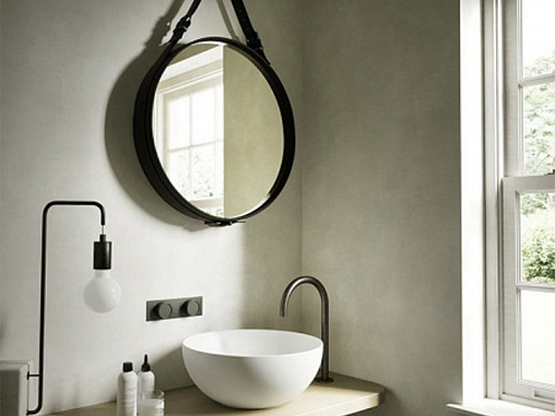Зеркало Area 60х60 см, с черной рамкой и ремнем из искусственной кожи, диаметр 60 см., Hatria