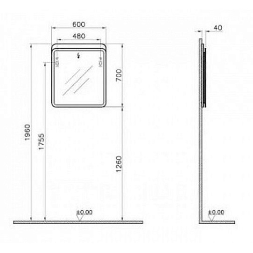 Зеркало D-Light 60х70 см, с подсветкой, Vitra