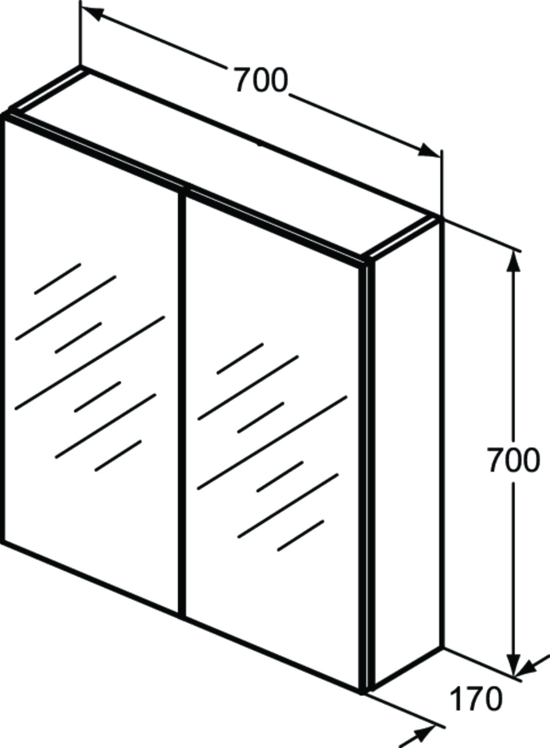 MIRROR&LIGHT Зеркальный шкафчик 70 см, две односторонние зеркальные дверцы с доводчиком, интегрированная нижняя светодиодная подсветка, внутреннее косметическое зеркало, самоклеющиеся металлические ручки, магнитный держатель, выключатель, розетка для бритвы, регулируемая стеклянная полка, крепеж в комплекте, 220-240 V, 50-60 Hz, IP44, Class II Aluminium Effect (Алюминий)
