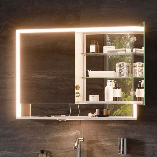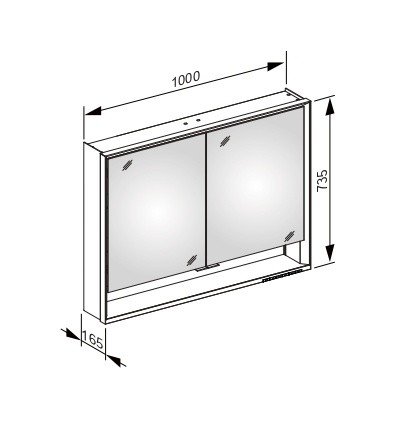 Зеркало Royal Lumos 100х73,5 см, с розеткой, зеркальные стенки (алюминий), с подсветкой, с подогревом, Keuco